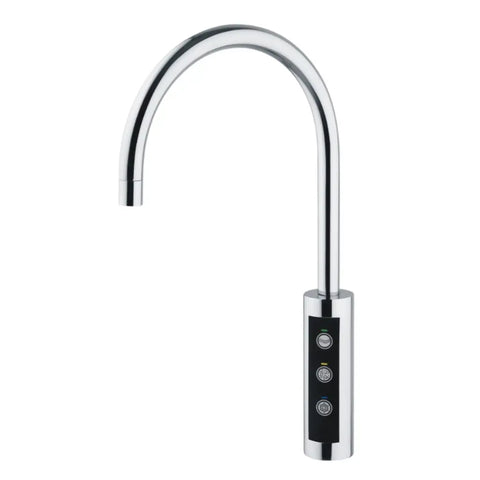 - Elektronische Dreifach-Wasserwahl: Drei Wasserarten per Knopfdruck – stilles Wasser, gekühltes Wasser oder gekühltes Sprudelwasser – ohne mechanische Mischhebel. So bleibt das Hauptwasser sauber getrennt vom Sprudelwasser.