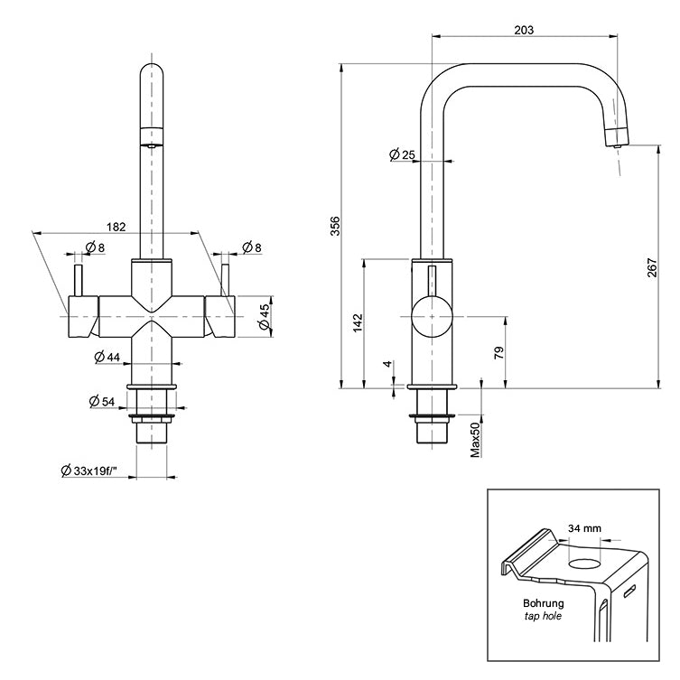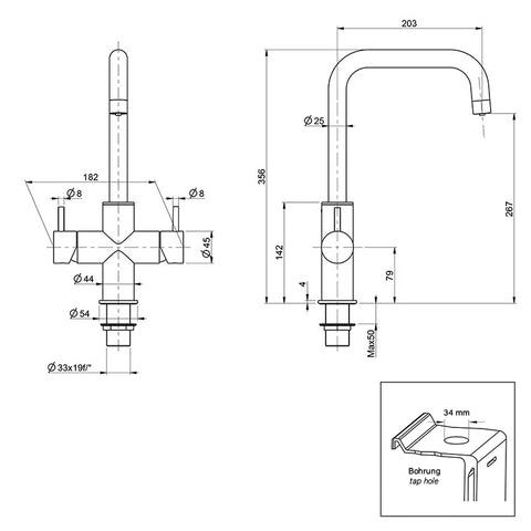 5-Wege-Wasserhahn CUCINA ESTETICA, Edelstahl massiv