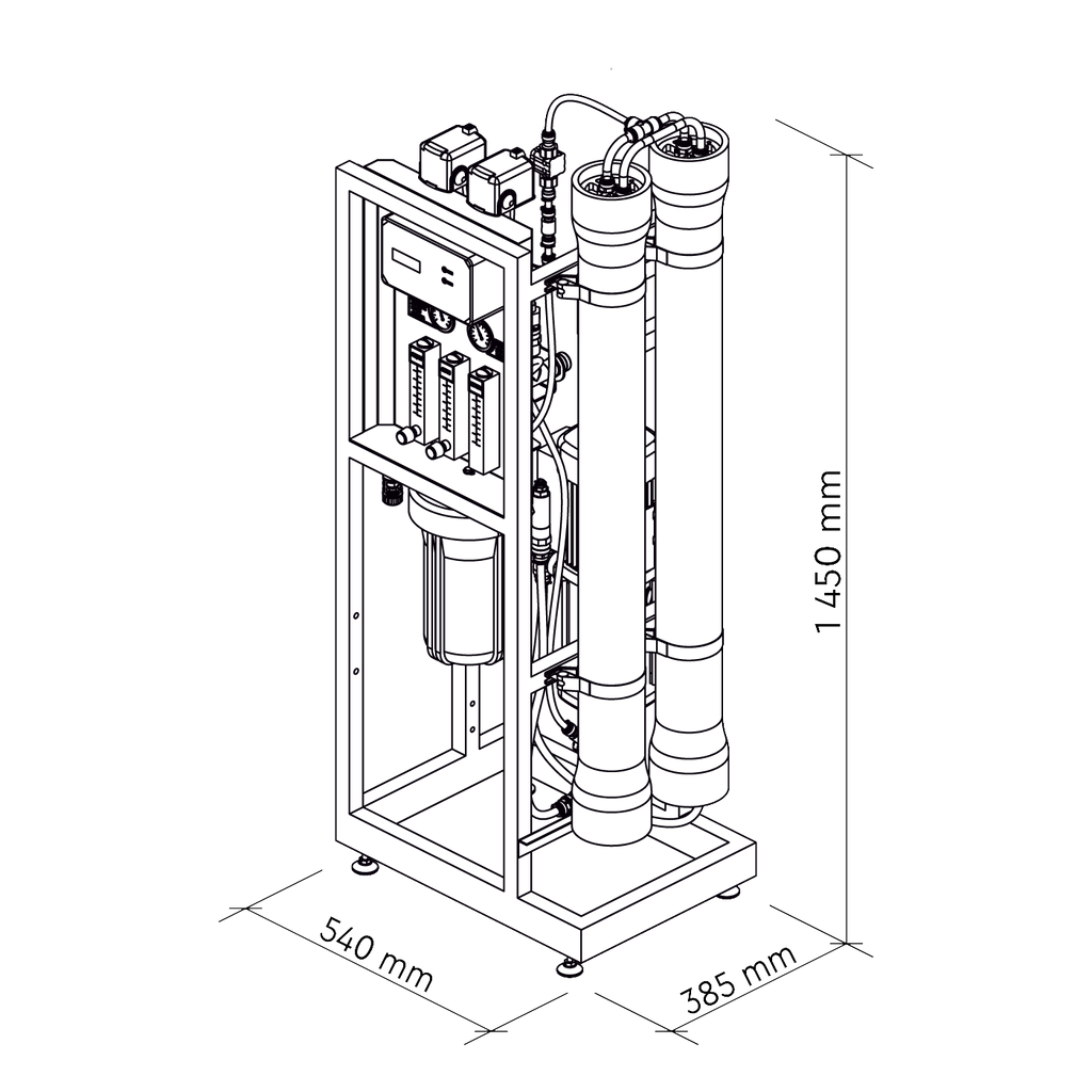 - Universeller Systemaufbau ermöglicht Anschlussmöglichkeiten von Permeatspülung und Rohwasserverschneidung