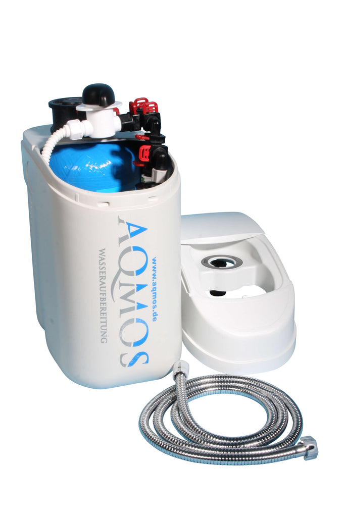 Weiches Wasser auch für eine kleine oder große Mietwohnung? Für eine Autowäsche ohne Kalkflecken? Für die Befüllung von Aquarien? Kein Problem! Die Aqmos BM-MINI ist der kleinste und kompakteste Wasserenthärter in unserem Sortiment. Er enthärtet bei 10°dH Eingangswasserqualität bis zu 1.600 Liter Wasser pro Regenerationszyklus. Die Aqmos BM-MINI funktioniert nach dem Ionenaustausch-Verfahren, d.h. sie tauscht die „Härtemineralien“ Calcium (Ca2+) und Magnesium (Mg2+) anteilig durch Natrium-Ionen (Na+) aus. Der Kalk wird somit entfernt und das Ergebnis ist weiches Wasser.