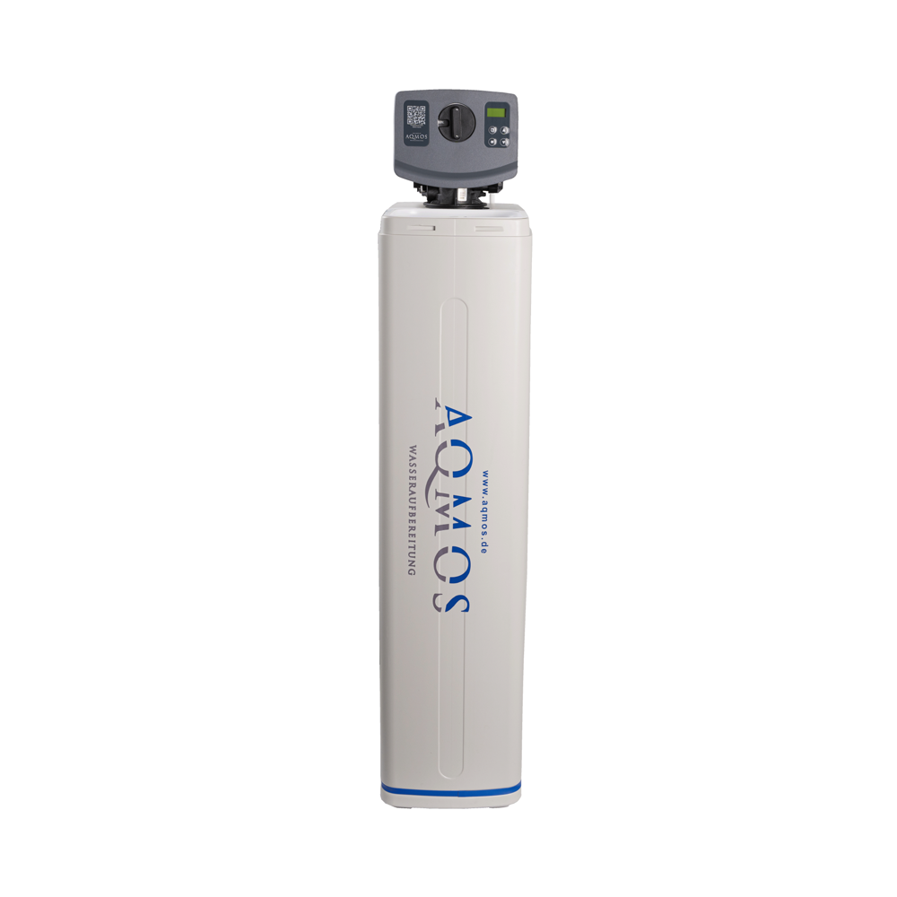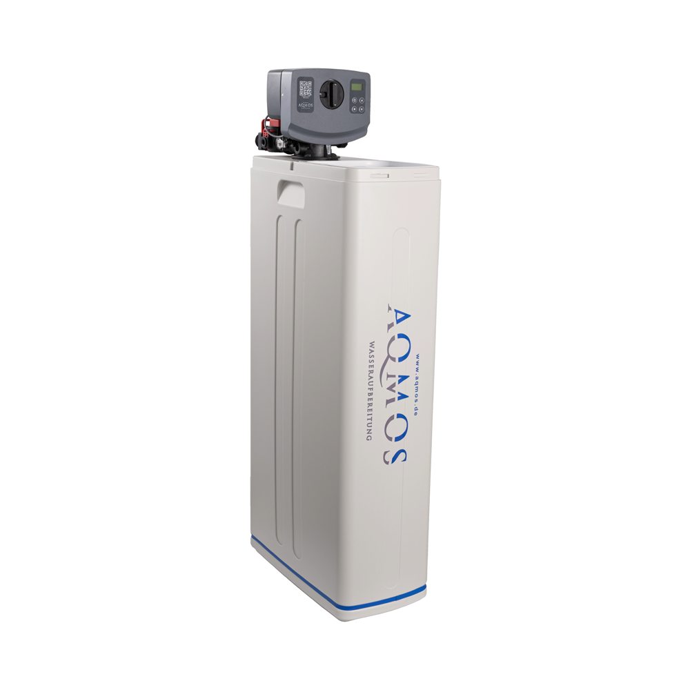 Die Aqmos R2D2-72 besteht aus einem Kabinettgehäuse mit abnehmbarem Deckel. In dem Kabinett ist eine GFK- Druckflasche eingebaut, welche mit hochwertigem Ionenaustauscher-Harz gefüllt ist. Das Kabinettgehäuse wird gleichzeitig als Regeneriersalzbehälter zur Solebereitstellung (Kochsalzlösung) benutzt und kann ein Salzvorrat von max. 50kg aufnehmen. Komplettiert wird die Anlage durch ein wassermengengesteuertes Ventil BNT 1650, welches auf der GFK-Druckflasche montiert ist.